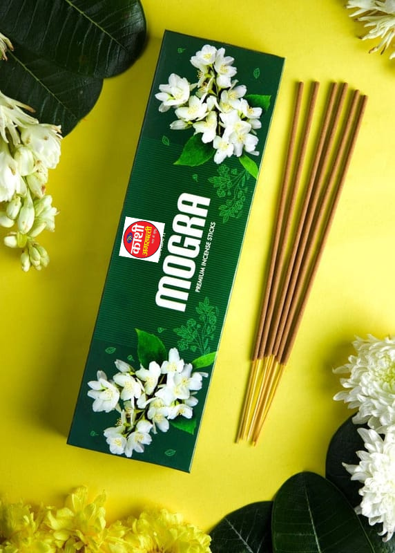 Mogra agarbatti areĀ incense sticks infused with the sweet, floral fragrance of the mogra (Jasmine) flower, creating a calming and uplifting atmosphere